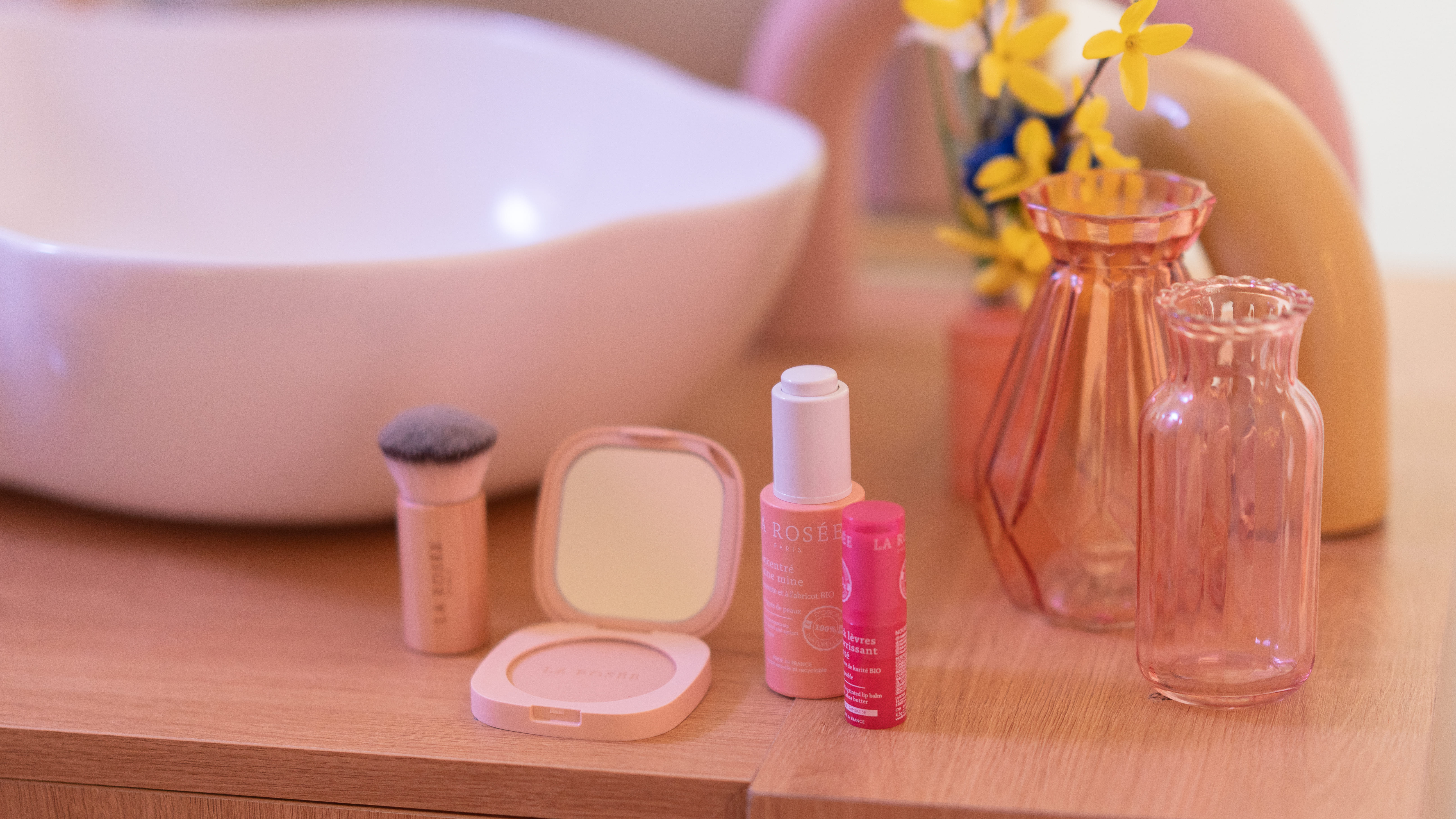 lavabo, vases en location de seconde main, produits La Rosée, fleurs séchées La Réponse D