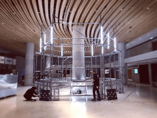 En un temps record, nos équipes ont investi les espaces pour transformer les halls en environnements chaleureux et engagés. Coordination avec les équipes techniques du Caroussel du Louvre, calage du mobilier zone par zone, montage des panneaux d'habillage, installation des végétaux, ajustements de dernière minute : tout a été orchestré pour qu'à l'ouverture des portes, chaque visiteur entre dans un espace qui respire la cohérence et la curiosité.