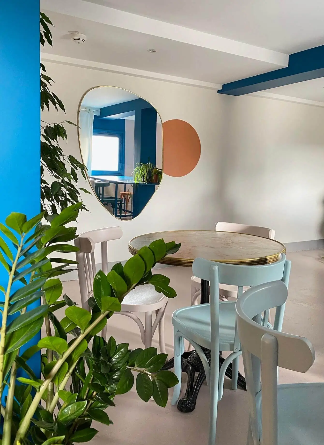 Notre approche artistique a consisté à utiliser des couleurs pour délimiter les différentes fonctions et y intégrer des mobiliers chinés pour créer une ambiance chaleureuse.